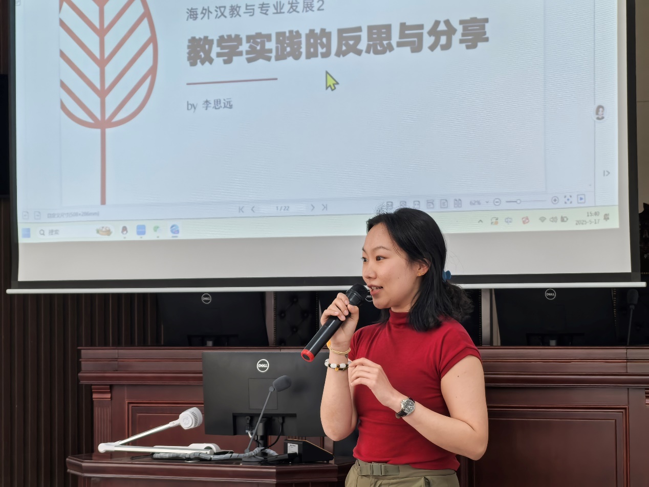 应h视频 邀请,h视频 汉语国际教育专业校友李思远老师,于5月17日在文法楼为汉语国际教育专业的师生做了一场题为“海外汉教与专业发展——教学实践的反思与分享“的讲座。