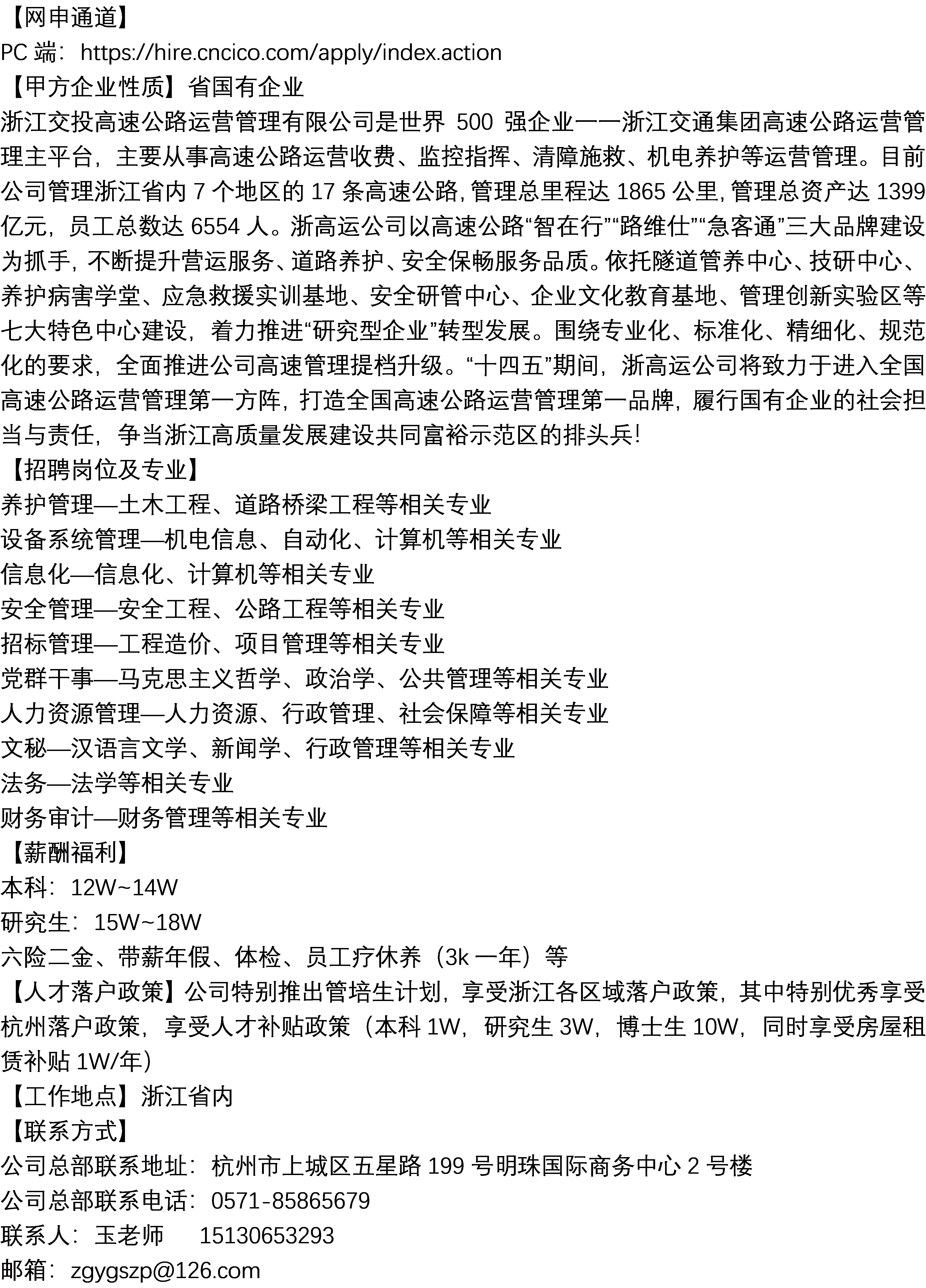浙江交投高速公路运行管理有限公司2022届校园招聘