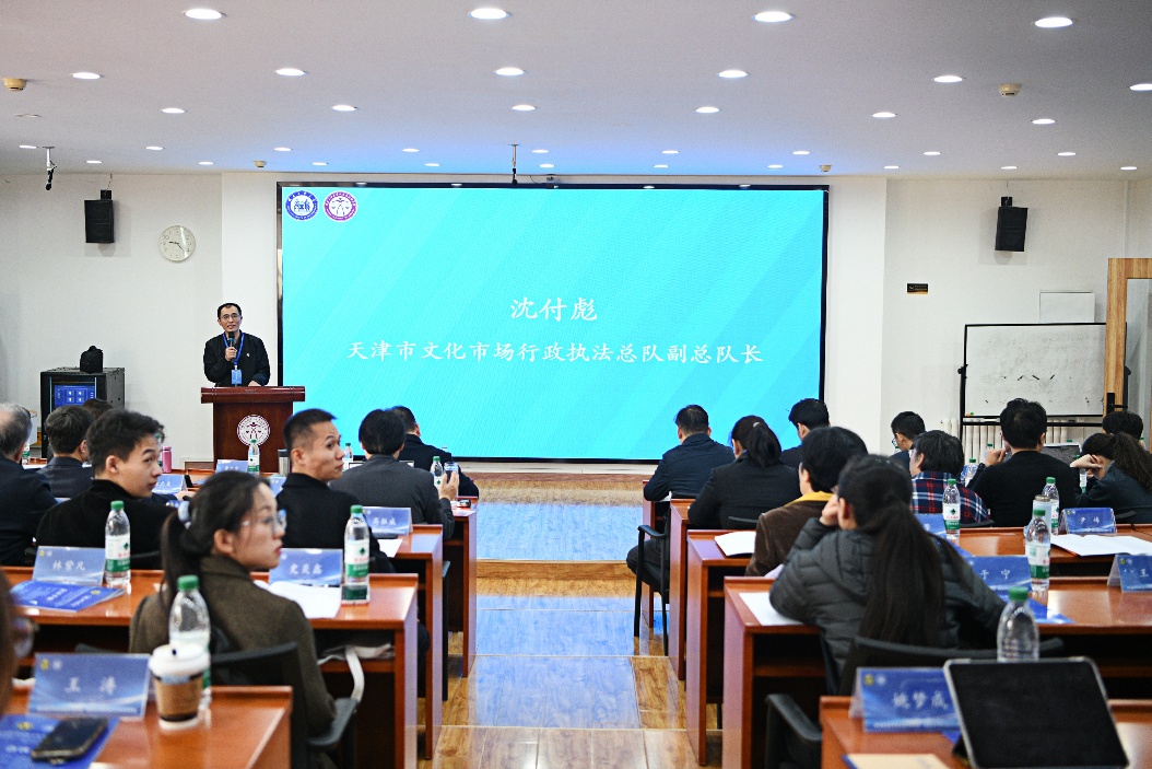天津市文化市场行政执法总队副总队长沈付彪对本次会议的召开表示热烈祝贺,指出数字经济正深刻重塑文旅产业的发展模式和治理格局,数据权属、算法治理、平台责任、数字知识产权保护等新型法律问题亟待破解。希望京津冀深化交流、凝聚智慧,共同构建适应数字时代要求的法治体系,为京津冀文旅协同发展注入新的法治动力。