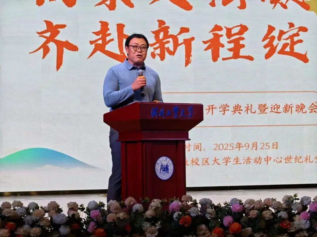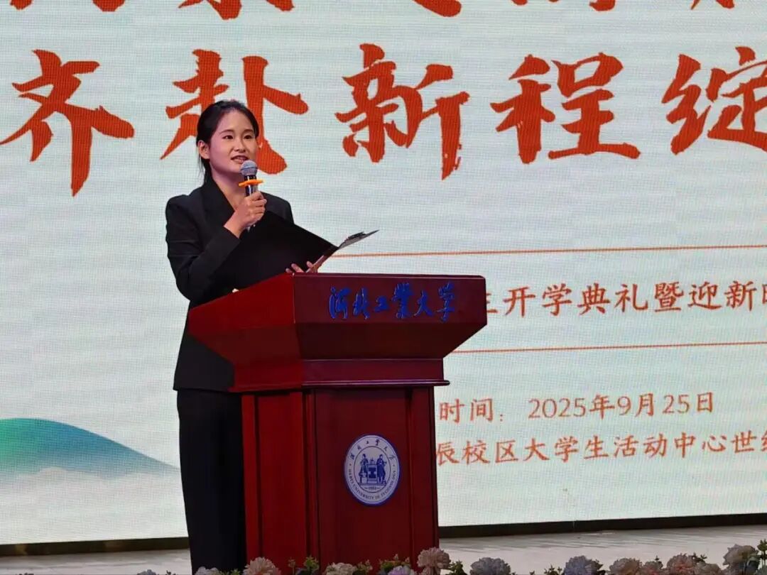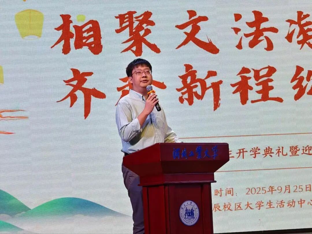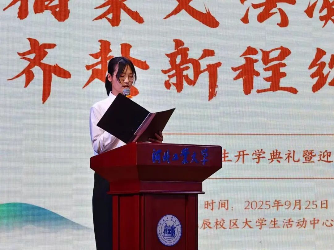 典礼伊始,h视频 院长蒋冰晶作迎新致辞,向加入文法学院的新同学们表示热烈欢迎,并围绕四点期望展开寄语:一是胸怀家国天下,将个人理想融入时代脉搏,以青春力量服务社会发展;二是永葆好奇心与求知欲,既要在课堂上与老师碰撞出思想的火花,又要在社团活动中绽放自我的光彩,“纸上得来终觉浅,绝知此事要躬行”,蒋院长以此勉励同学们要在实践中探索真知、锤炼品格;三是常怀感恩之心,铭记父母的养育之恩和老师的谆谆教诲,珍惜同窗之谊,不负韶华时光;四是涵养乐观豁达的胸襟,以从容之态应对挑战,于磨砺中凝聚奋进之力。最后,蒋院长衷心祝愿文法学院的同学们能够秉承“勤慎公忠”的校训,在人文底蕴与法治精神的滋养下,成长为有温度、有筋骨、有担当的时代新人,在河北工大的热土上放飞青春梦想!